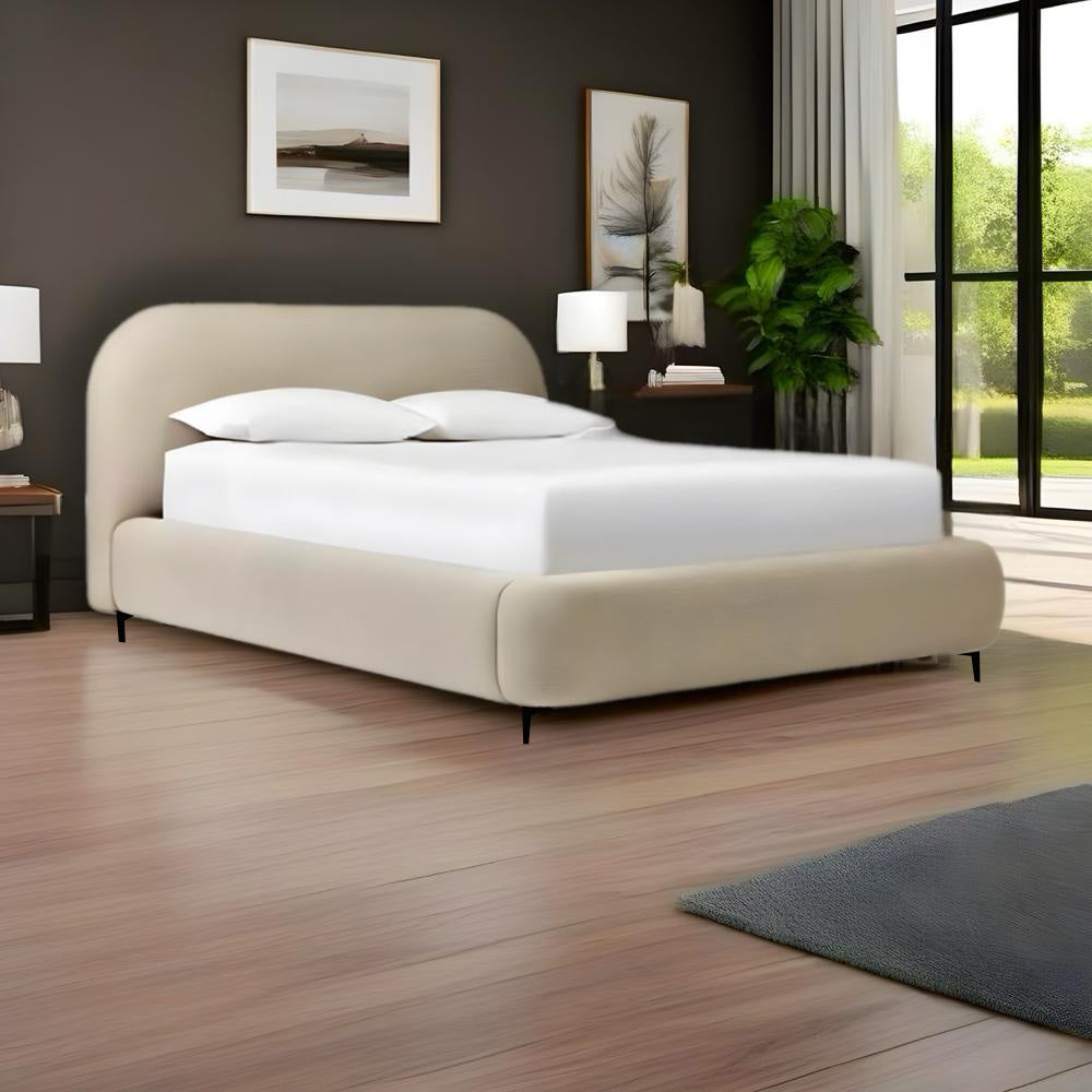 פשטות שהיא הצהרה – מיטה עם גב מעוגל חלק בקווים מינימליסטיים, לעיצוב רגוע, נקי ונצחי.